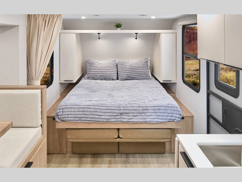 With each model you will enjoy spacious living quarters, full bath amenities, and plenty of exterior storage space. The Micro Minnie travel trailers are constructed with a durable NXG engineered frame, 1.5" FilonMax fiberglass sidewalls with Azdel composite backing, and a walkable roof decking with roof ladder for convenience. And you might even plan to go off-grid for a while with the 200-watt solar panel!